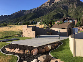efter at have spillet noget Pickleball den sommer besluttede jeg, at så længe vi hældte en pude, skulle vi have en stor nok til at spille pickleball og en række andre aktiviteter også, så site planen blev ændret.