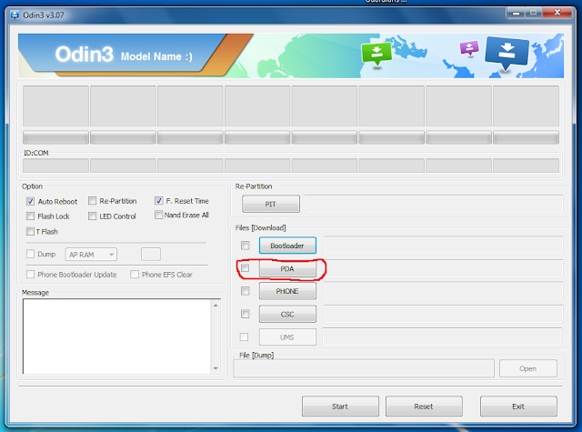 Opmerking Als u niet weet wat u doet, verandert er niets in odin3, omdat dit ernstige problemen met uw telefoon kan veroorzaken.