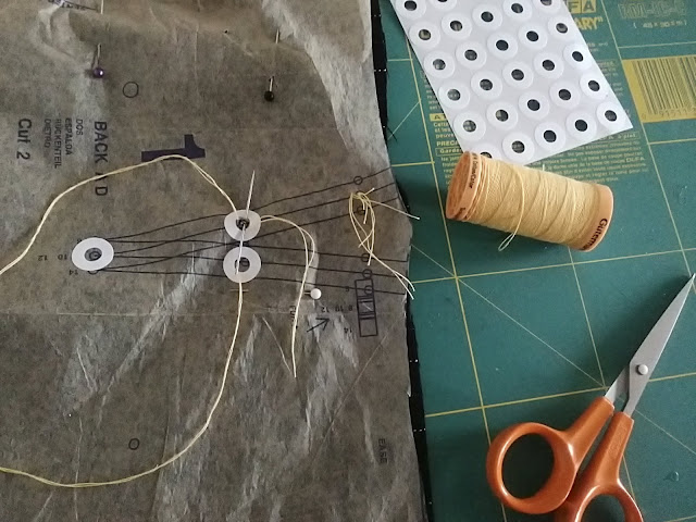 zauważ, że używam wzmacniaczy otworów ze sklepu stacjonarnego, aby wzmocnić punkty, w których umieszcza się krawieckie pinezki. Nie jest to obowiązkowe, ale zawsze to robiłem.