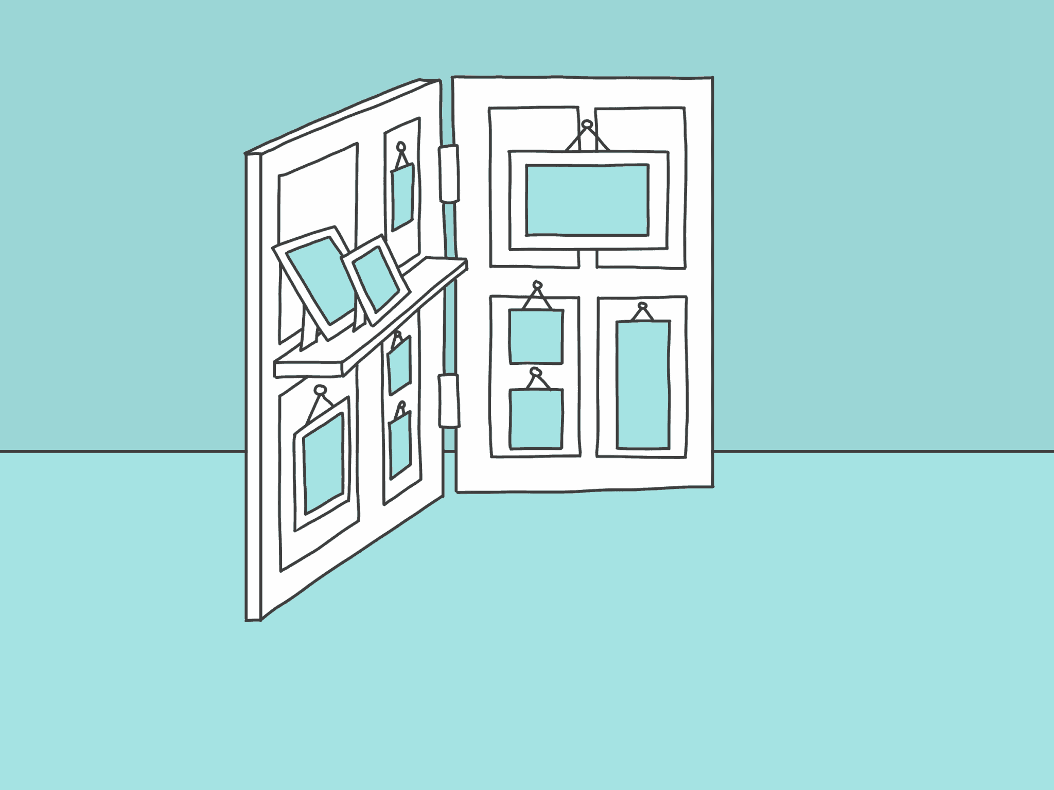 ik heb gezien dat luiken op een aantal manieren worden gebruikt. Aan de achterkant kan een massief stuk hout worden bevestigd en de eenheid kan zo worden geplaatst dat de luiken omhoog hengelen. Dan items zoals kunst, kaarten, enz. kan worden ingesleuteld, en elke sluiter fungeert als een zak. Items kunnen ook worden aangesloten op elke sluiter om opknoping ruimte toe te voegen aan uw display.